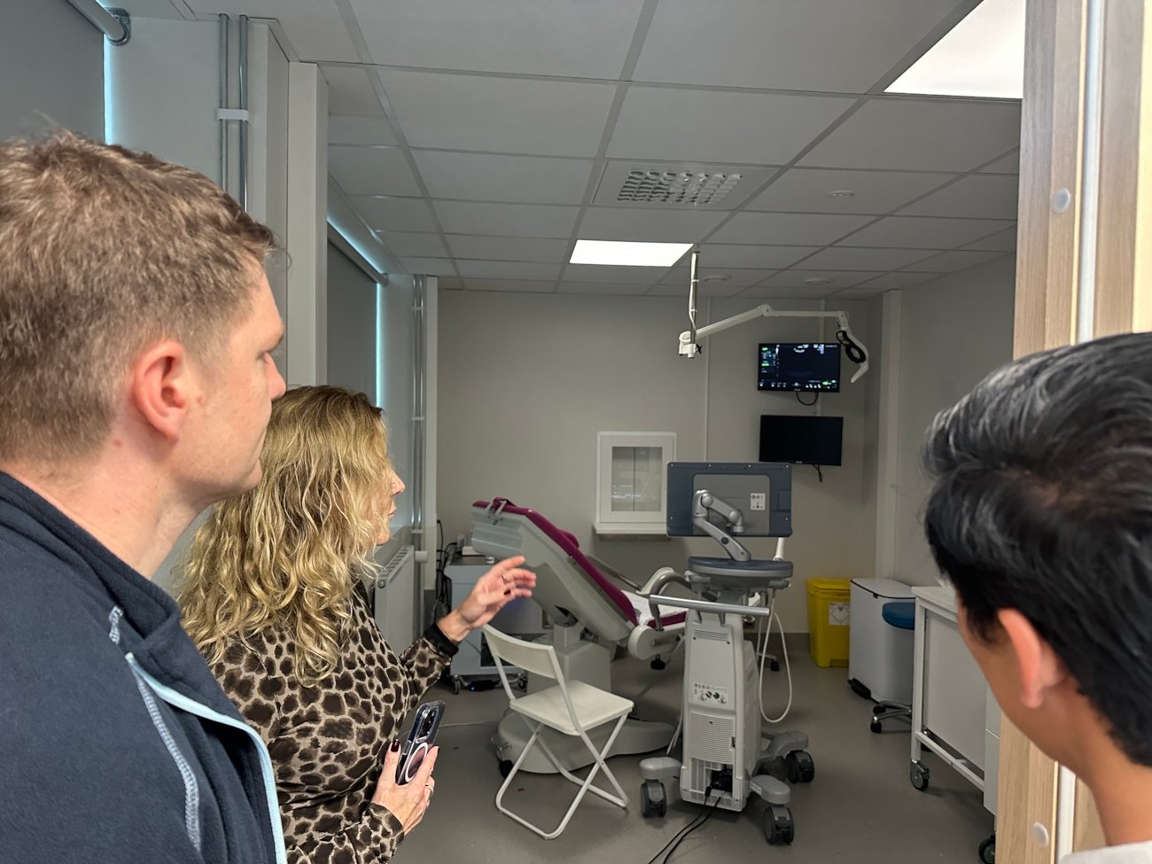 Mansell viser Bekkemellem og Langaas rundt på klinikken i hovedstaden. Foto: Emma Egedal Nilsen (NHO Geneo).